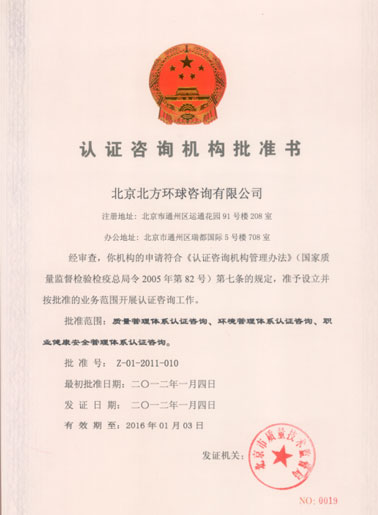 北京北方環(huán)球咨詢(xún)有限公司(BFHQ)經(jīng)北京市質(zhì)量技術(shù)監(jiān)督局批準(zhǔn)(批準(zhǔn)號(hào):Z-01-2011-010),在國(guó)家工商行政管理部門(mén)登記注冊(cè),是專(zhuān)業(yè)從事各類(lèi)管理體系認(rèn)證咨詢(xún)、產(chǎn)品認(rèn)證咨詢(xún)、培訓(xùn)的專(zhuān)業(yè)機(jī)構(gòu)。我公司具有廣泛的認(rèn)證業(yè)務(wù)范圍,致力于大、中、小型各類(lèi)企業(yè)的ISO管理體系認(rèn)證咨詢(xún)、企業(yè)管理及培訓(xùn)服務(wù),已成功為數(shù)千家企業(yè)提供了ISO9001、ISO14001、ISO45001、ISO27001、ISO20000、ISO22000、TS16949等認(rèn)證服務(wù)。